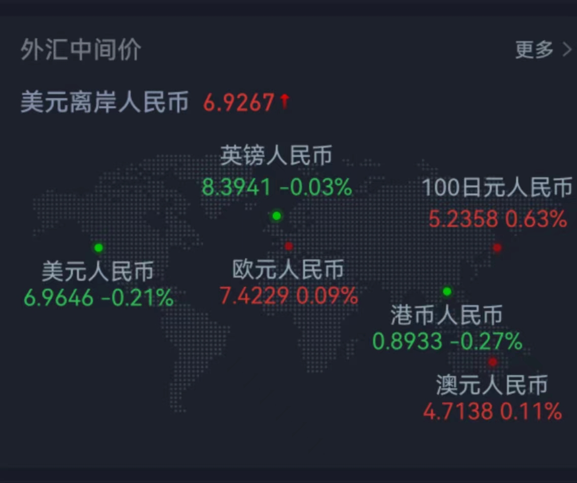 上周五在岸人民幣兌美元夜盤23:30收?qǐng)?bào)6.9000。人民幣兌美元中間價(jià)報(bào)6.9646,調(diào)升147個(gè)基點(diǎn),上周累計(jì)調(diào)升164個(gè)基點(diǎn),全年累計(jì)調(diào)貶5889個(gè)基點(diǎn)。交易員稱,市場(chǎng)對(duì)疫情還是有擔(dān)憂的,短期情緒受抑制。
