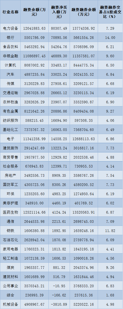 表:1月3日申萬一級行業(yè)兩融交易情況: