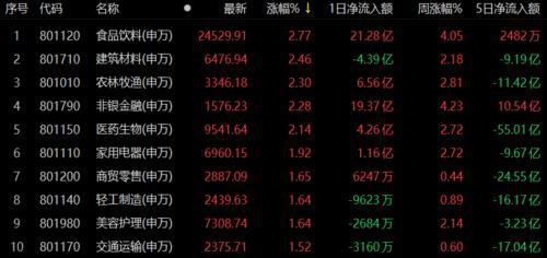 1月13日,行業(yè)板塊呈漲多跌少格局。從31類申萬一級(jí)行業(yè)看,有25類行業(yè)上漲,占比超八成,6類行業(yè)下跌。漲幅方面,食品飲料行業(yè)居首達(dá)2.77%,大單資金凈買入21.28億元,此外,建筑材料、農(nóng)林牧漁、非銀金融和醫(yī)藥生物也漲幅超2%。跌幅方面,通信行業(yè)居首,達(dá)0.38%。