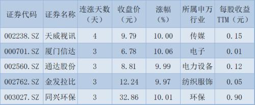 表:連續(xù)上漲3日且今日收盤漲停股一覽
