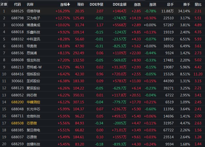 具體看,截至1月17日上午收盤,半導(dǎo)體及元件板塊表現(xiàn)搶眼,漲幅達2.4%。其中,恒維存儲、艾為電子、博通集成等概念股漲幅均超10%。