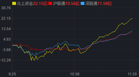 從資金面來看,2月2日上午,北上資金凈買入金額達(dá)22.15億元,其中,滬股通凈買入10.56億元,深股通凈買入11.59億元。