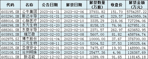 表:下周解禁金額超10億元的公司情況