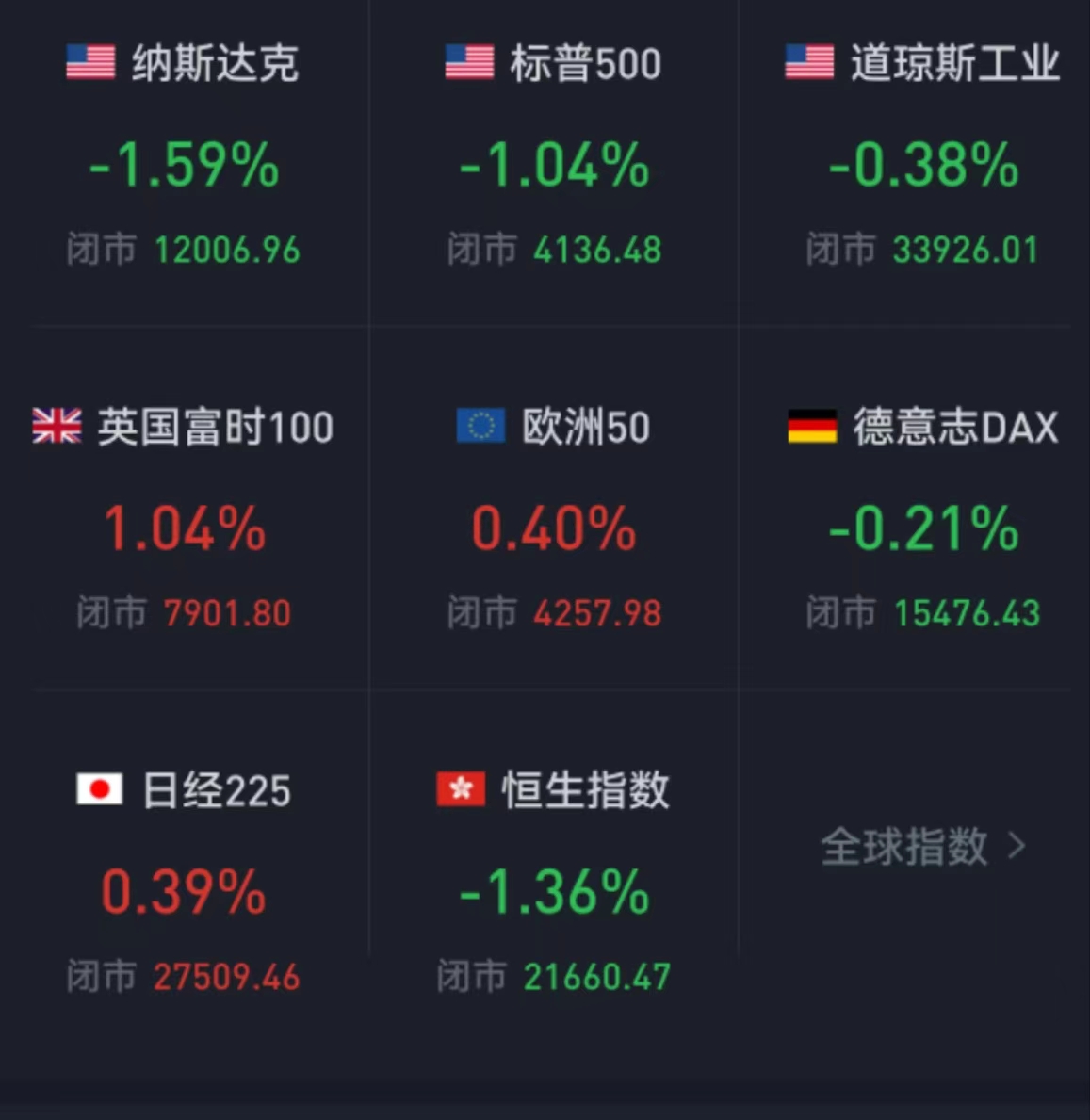 周五,美國三大股指全線收跌,道指跌0.38%報33926.01點,標(biāo)普500指數(shù)跌1.04%報4136.48點,納指跌1.59%報12006.96點。本周,道指累計周跌幅0.15%,標(biāo)普500指數(shù)累計周漲幅達1.62%,納指累計周漲幅3.31%。