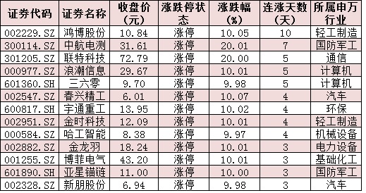 表:連續(xù)上漲3日以上且今日收盤(pán)漲停個(gè)股情況:
