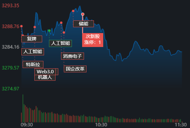 2月14日,A股早盤三大指數(shù)高開后震蕩回落,滬市略強(qiáng)。截至上午11:30,上證指數(shù)跌0.03%,報(bào)3283.21點(diǎn);深證成指和創(chuàng)業(yè)板指跌幅分別為0.45%和0.68%;滬深兩市成交額合計(jì)5749.5億元,較前一交易日下降了5.14%??傮w來看,A股市場(chǎng)個(gè)股漲少跌多,漲跌停方面,有23只個(gè)股漲停,跌停股5只。