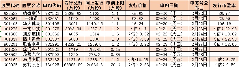 根據(jù)發(fā)行安排,下周(2月20日-24日)有11只新股發(fā)行。其中,滬市主板有4只,深市主板有3只,科創(chuàng)板和創(chuàng)業(yè)板各有2只。