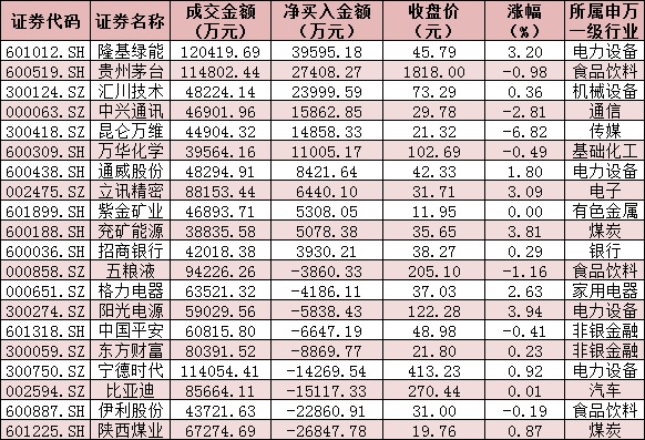 今日滬、深股通前十大成交活躍股交易情況