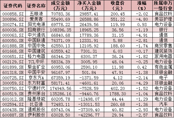 表:今日滬、深股通前十大成交活躍股交易情況: