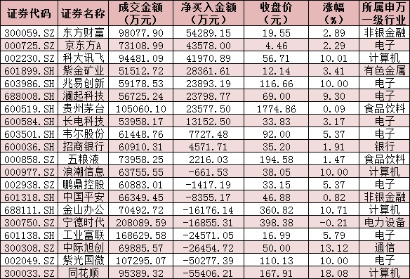 表:今日滬、深股通前十大成交活躍股交易情況: