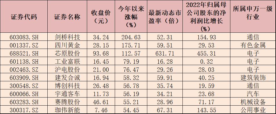 表:今年以來漲幅居前十的績優(yōu)股一覽