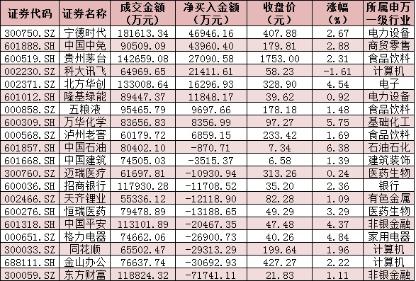 表:今日滬、深股通前十大成交活躍股交易情況: