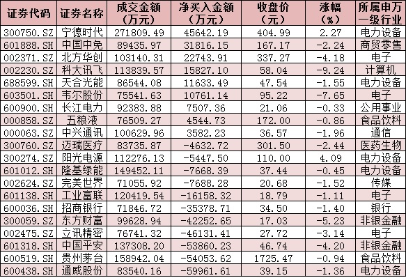 表:今日滬、深股通前十大成交活躍股交易情況: