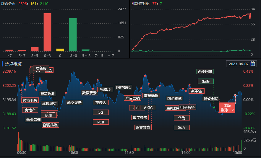 6月7日,兩市再現(xiàn)震蕩分化走勢,滬指盤中窄幅震蕩,尾盤拉升后小幅收漲,創(chuàng)業(yè)板指下跌超1.5%,續(xù)創(chuàng)年內(nèi)新低,兩市成交量再度萎縮,北上資金凈買入超25億元。有機(jī)構(gòu)人士表示,靜候新的做多催化劑出現(xiàn)。