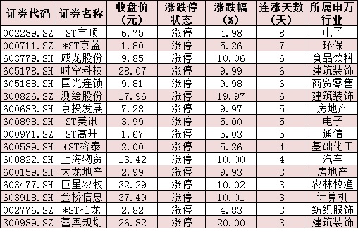 表:連續(xù)3日上漲且今日收盤漲停個(gè)股情況: