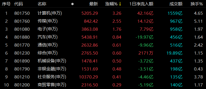 6月13日,行業(yè)漲多跌少,從31類申萬一級行業(yè)看,有16類行業(yè)上漲,占比51.61%,計算機行業(yè)漲幅居首,達3.26%,此外,傳媒和電子行業(yè)漲幅也均超1%。下跌方面,煤炭居首,跌幅達1.00%。