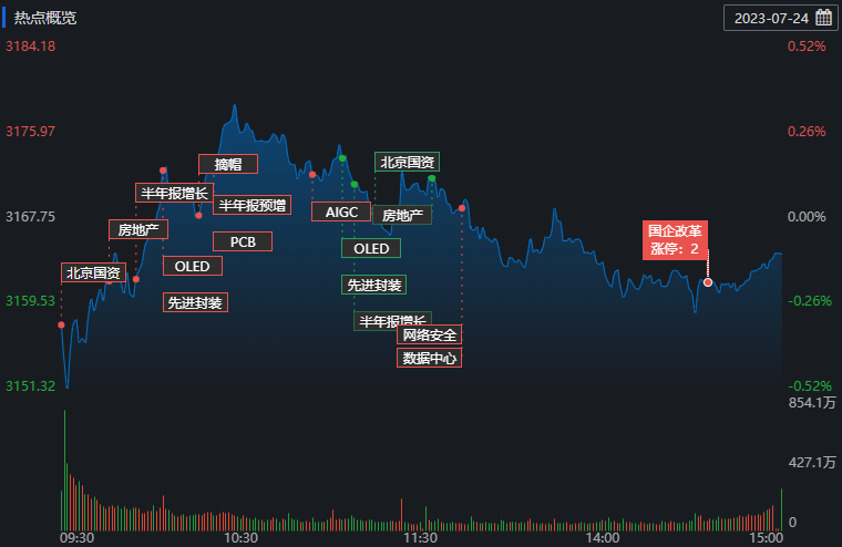 7月24日,A股三大指數(shù)弱勢震蕩,交投低迷。截至收盤,上證指數(shù)跌0.11%報3164.16點;深證成指跌0.58%報10747.79點,創(chuàng)業(yè)板指跌0.75%報2146.93點。A股合計成交額6599.77億元,較前一交易日縮減7.34%;北向資金全天凈賣出51.43億元;其中滬股通凈買入-6.59億元,深股通凈買入-44.83億元。今日A股有2457只上漲,2549只下跌,漲跌比為0.96。