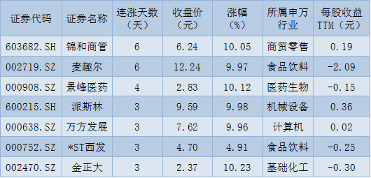 表:連續(xù)上漲3日且今日收盤漲停股一覽
