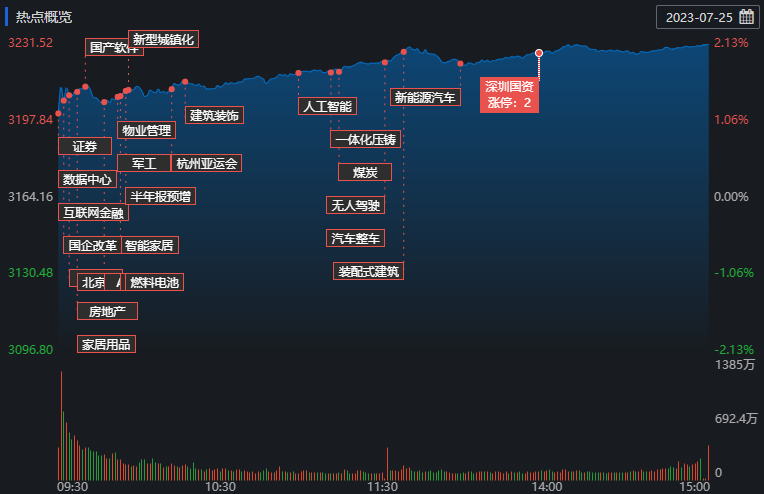7月25日,A股受利好消息影響,三大指數(shù)高開,房地產(chǎn)與非銀金融等板塊強(qiáng)勢崛起,市場人氣有所恢復(fù)。截至收盤,上證指數(shù)漲2.13%報(bào)3231.52點(diǎn);深證成指漲2.54%報(bào)11021.29點(diǎn),創(chuàng)業(yè)板指漲2.14%報(bào)2192.90點(diǎn)。A股合計(jì)成交額9490.90億元,較前一交易日增長43.81%;北向資金全天凈買入189.83億元;其中滬股通凈買入98.79億元,深股通凈買入91.05億元。今日A股有4414只上漲,716只下跌,漲跌比為6.16。