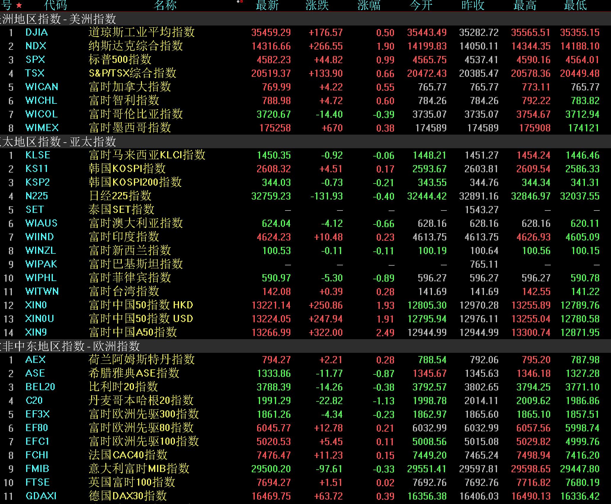 周五,美國三大股指全線收漲,道指漲0.5%報(bào)35459.29點(diǎn),標(biāo)普500指數(shù)漲0.99%報(bào)4582.23點(diǎn),納指漲1.9%報(bào)14316.66點(diǎn)。本周,道指漲0.66%,標(biāo)普500指數(shù)漲1.01%,納指漲2.02%。