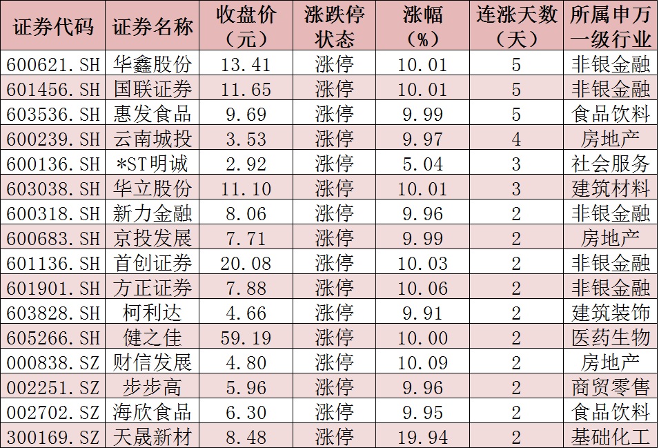 表:連續(xù)上漲2日且今日收盤漲停個股情況: