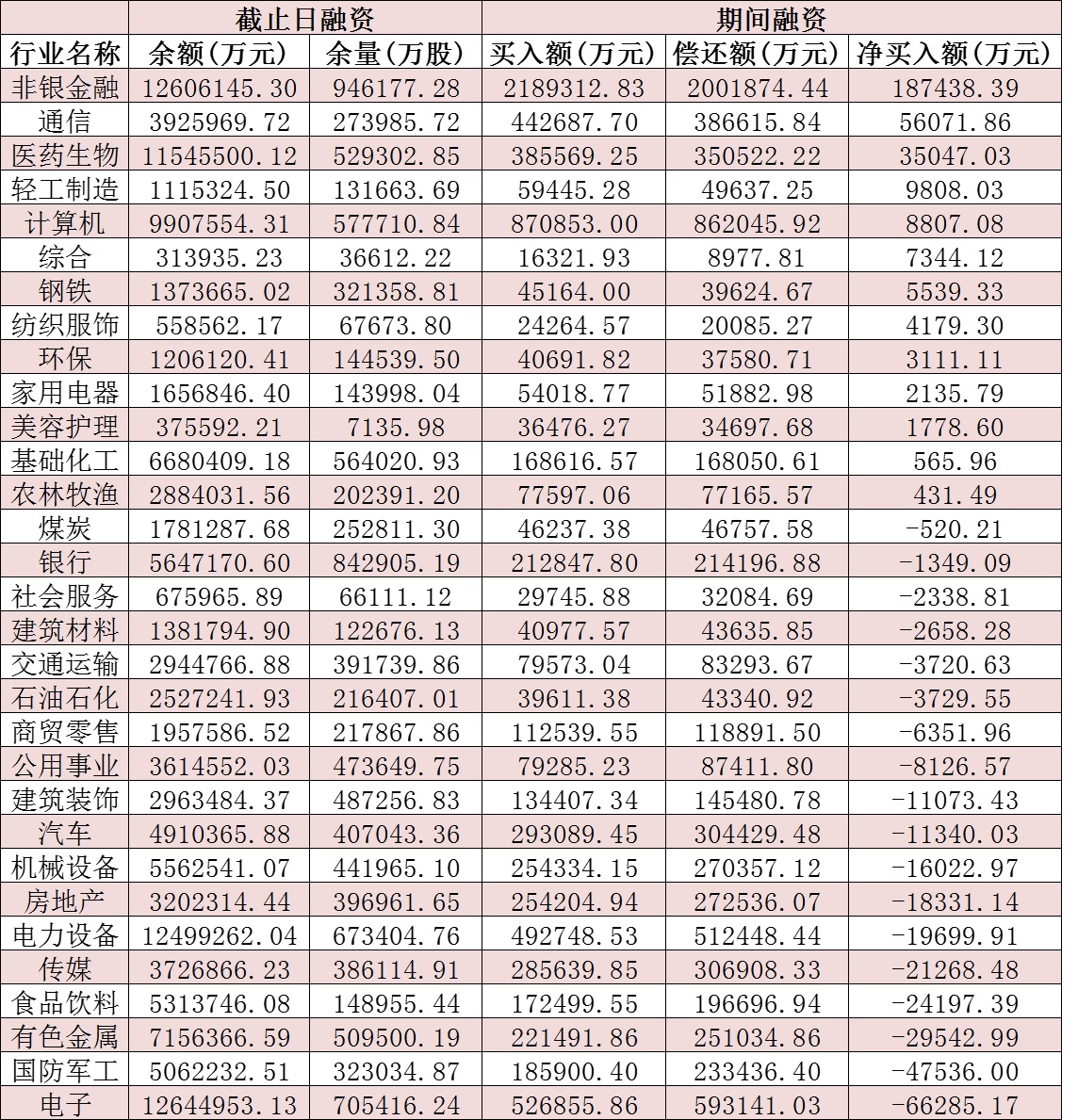 表:8月4日申萬(wàn)一級(jí)行業(yè)兩融交易情況