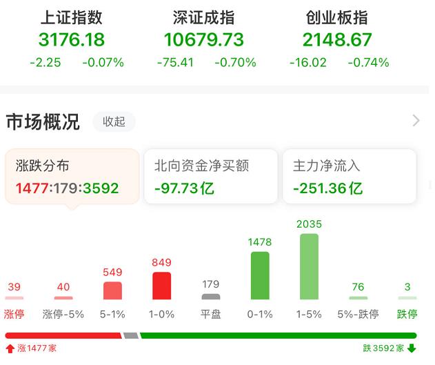 周二(8月15日),A股三大指數(shù)午后探底回升,上證指數(shù)相對偏強。截至收盤,上證指數(shù)跌0.07%報3176.18點,深證成指跌0.70%報10679.73點,創(chuàng)業(yè)板指跌0.74%報2148.67點;兩市合計成交金額達7064.96億元??傮w上看,A股個股跌多漲少。其中,漲停個股達39只,跌停個股達3只。