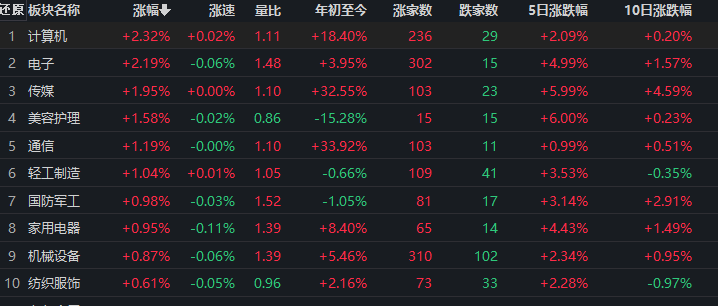 計(jì)算機(jī)行業(yè)漲超2.32%