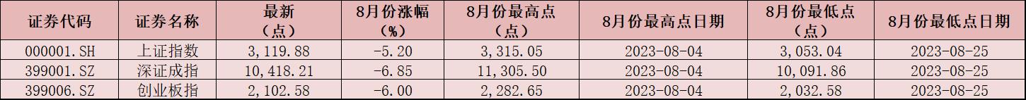 表:8月份A股三大指數(shù)市場(chǎng)表現(xiàn)一覽