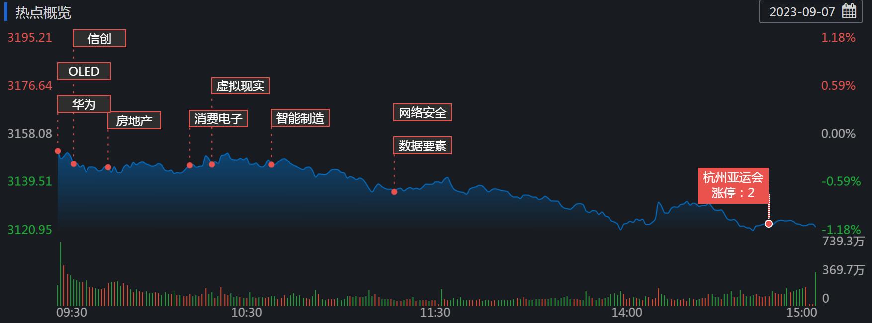 具體熱點(diǎn)看,今日酒店及餐飲板塊逆市領(lǐng)漲,君亭酒店、西安飲食漲超3%;教育板塊沖高回落,國脈科技、東方時(shí)尚漲超5%;電子競技開盤沖高后震蕩下行,華立科技20CM漲停;另有景點(diǎn)及旅游、華為鯤鵬、跨境支付板塊上漲。下跌方面國家大基金持股板塊領(lǐng)跌,光刻膠、BC電池、半導(dǎo)體及元件等近期活躍板塊跌幅居前。