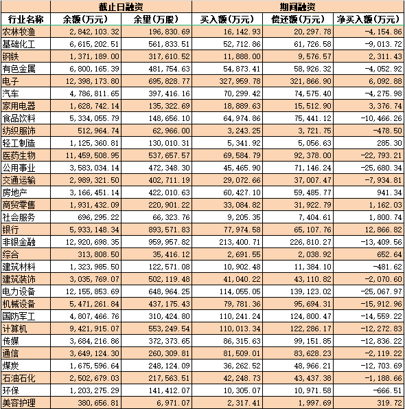 表:9月8日申萬一級行業(yè)兩融交易情況