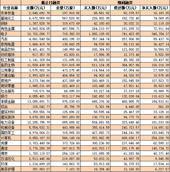表:9月11日申萬一級(jí)行業(yè)兩融交易情況