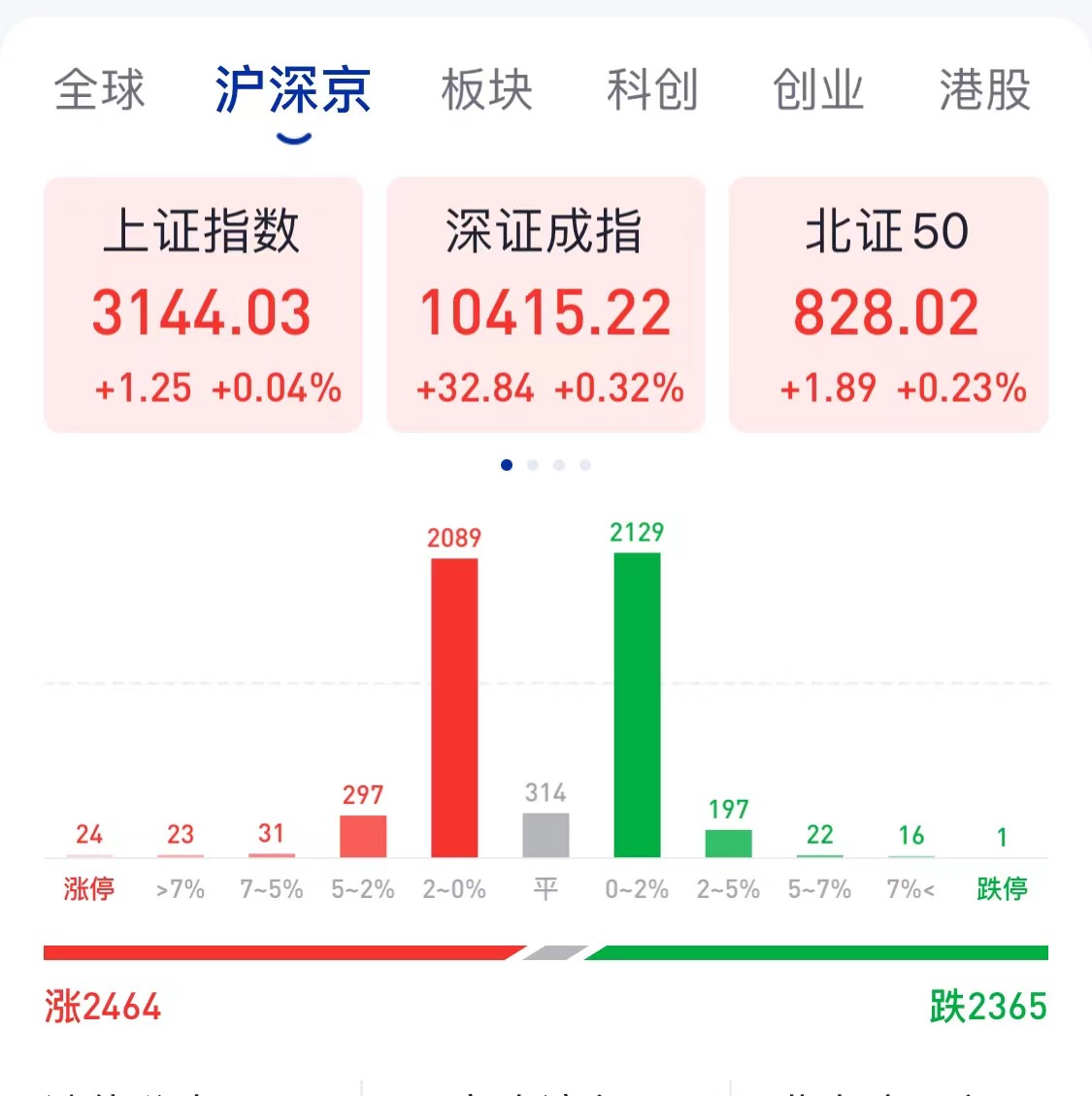 周二(9月12日),A股三大股指震蕩,漲跌互現(xiàn)。截至上午收盤,上證指數(shù)漲0.04%,報(bào)3144.03點(diǎn);深證成指漲0.32%,報(bào)10415.22;創(chuàng)業(yè)板指跌0.10%;滬深兩市合計(jì)成交額4492.47億元,總體來看,兩市上漲個(gè)股略多于下跌個(gè)股,超2400只個(gè)股上漲。