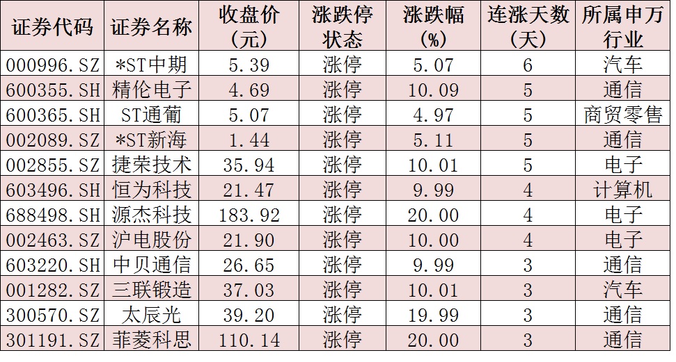 表:連續(xù)上漲3日且今日收盤漲停個股情況: