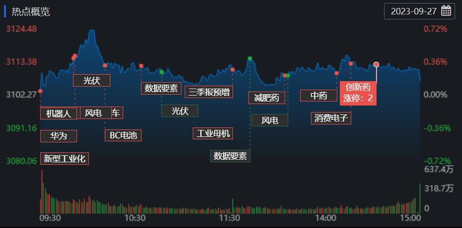 具體來看,醫(yī)藥、新能源賽道表現(xiàn)強(qiáng)勢,其中,CRO(合同研究組織)概念板塊領(lǐng)漲,德展健康漲停;減肥藥概念股持續(xù)走強(qiáng),常山藥業(yè)等3只概念股漲停;創(chuàng)新藥板塊集體走強(qiáng),賽隆藥業(yè)等5只概念股漲停;BC(全背電極接觸晶硅光伏電池)電池概念股全天強(qiáng)勢,鈞達(dá)股份、愛旭股份漲停;機(jī)器人、新型工業(yè)化概念股維持強(qiáng)勢,德恩精工20CM漲停實(shí)現(xiàn)3連板,精倫電子6連板;醫(yī)療服務(wù)、高壓氧艙、互聯(lián)網(wǎng)電商、流感、中藥、HJT電池、醫(yī)美概念等板塊表現(xiàn)活躍。