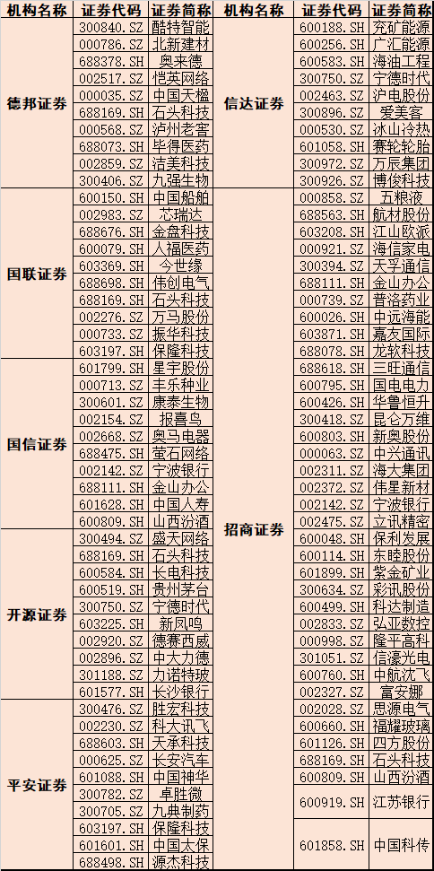 對于即將到來的10月份行情,機(jī)構(gòu)如何布局呢?Wind數(shù)據(jù)顯示,截至9月27日發(fā)稿,國聯(lián)證券、國信證券、開源證券、平安證券、信達(dá)證券、招商證券、德邦證券等7家券商公布了10月份金股組合和策略,共有89只個股被推薦(不包括港股),石頭科技、寧波銀行、保隆科技、寧德時代、金山辦公、山西汾酒等個股獲券商集體看多。多數(shù)券商看好科技、消費(fèi)、新能源等領(lǐng)域10月份的投資機(jī)會。