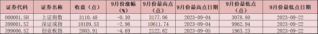 表:三大指數(shù)9月份市場(chǎng)表現(xiàn)一覽