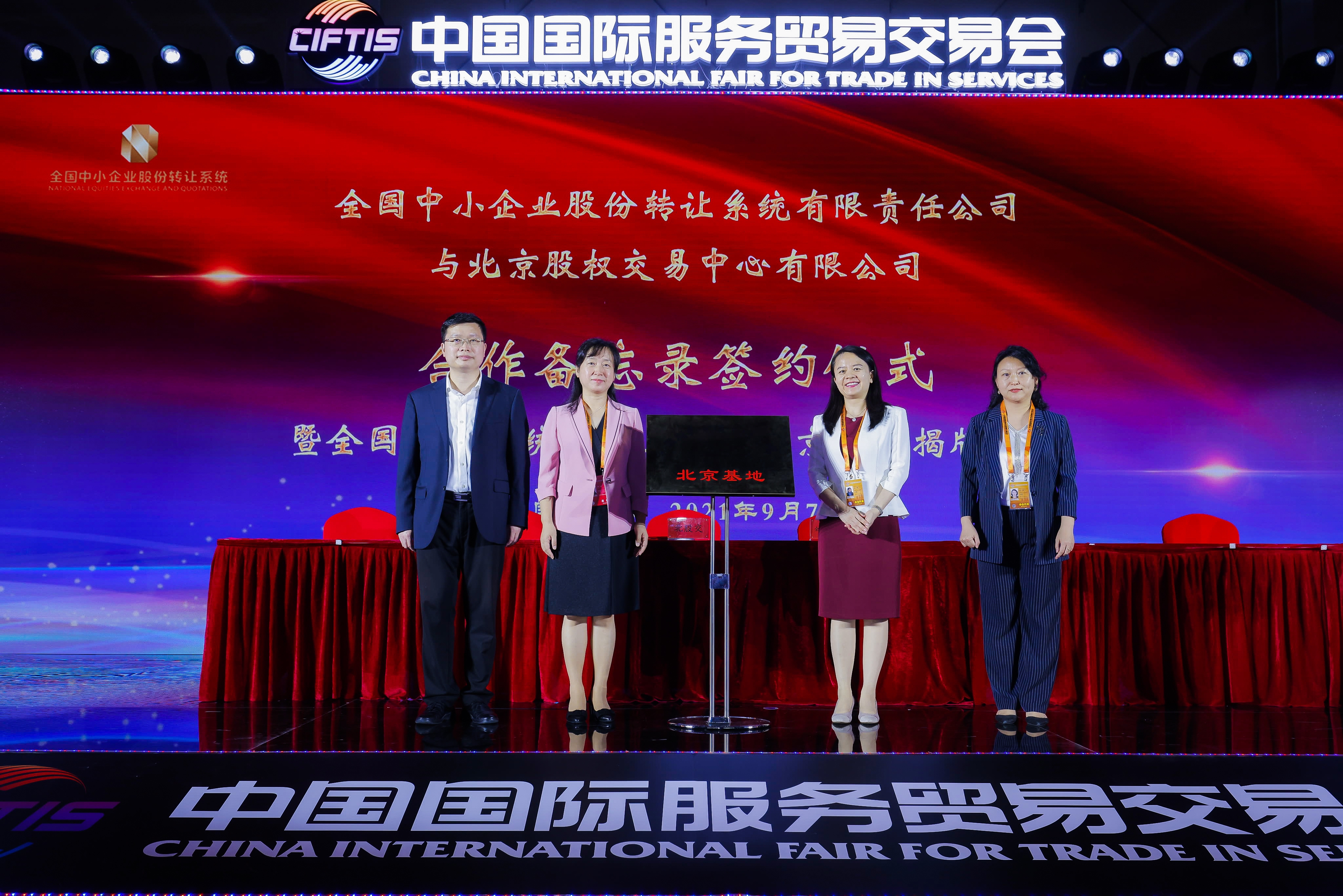 9月7日,在中國國際服務貿易交易成果發(fā)布會上,全國中小企業(yè)股份轉讓系統(tǒng)有限責任公司(以下簡稱“全國股轉公司”)與北京股權交易中心有限公司簽署合作備忘錄,并舉辦全國股轉系統(tǒng)(新三板)北京基地揭牌儀式。