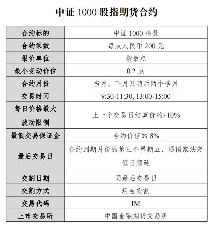 據(jù)記者了解,中證1000股指期貨合約乘數(shù)為每點人民幣200元,中證1000股指期權合約乘數(shù)為每點人民幣100元,其他主要條款分別與已上市的股指期貨、股指期權產品基本保持一致。
