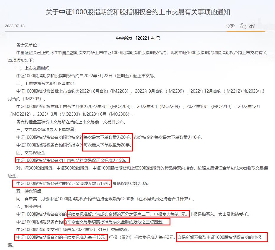 7月18日,證監(jiān)會網站消息顯示,證監(jiān)會近日批準中國金融期貨交易所開展中證1000股指期貨和期權交易。相關合約正式掛牌交易時間為2022年7月22日。當日,中金所發(fā)布關于中證1000股指期貨和股指期權合約及相關業(yè)務規(guī)則的通知等系列規(guī)則。