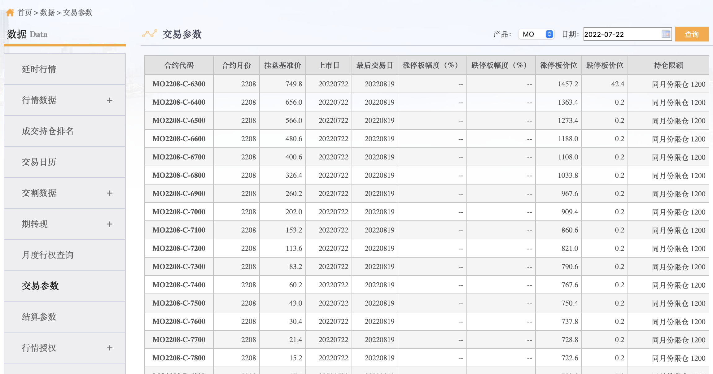 中證1000股指期權(quán)MO2208月份合約、MO2209月份合約、MO2212月份合約、MO2303月份合約、MO2306月份合約同日上市交易,中證1000股指期權(quán)合約的掛盤基準(zhǔn)價,可通過中金所網(wǎng)站“數(shù)據(jù)”欄目查詢。