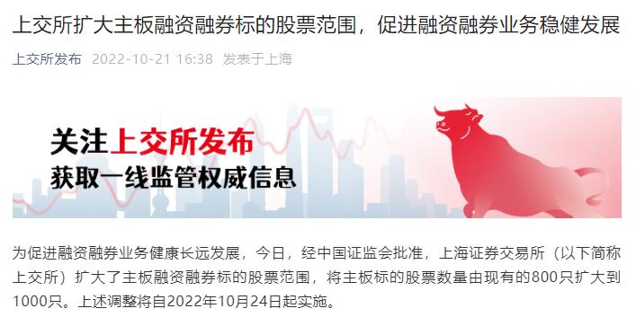 其中,滬市主板標(biāo)的股票數(shù)量由現(xiàn)有的800只擴(kuò)大到1000只,深市注冊制股票以外的標(biāo)的股票數(shù)量由現(xiàn)有的800只擴(kuò)大到1200只,上述調(diào)整將自2022年10月24日起實施。