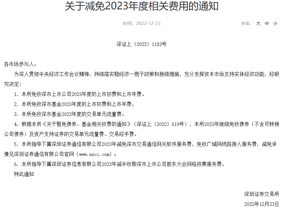 2.免收深市基金2023年度的上市初費(fèi)和上市年費(fèi)。