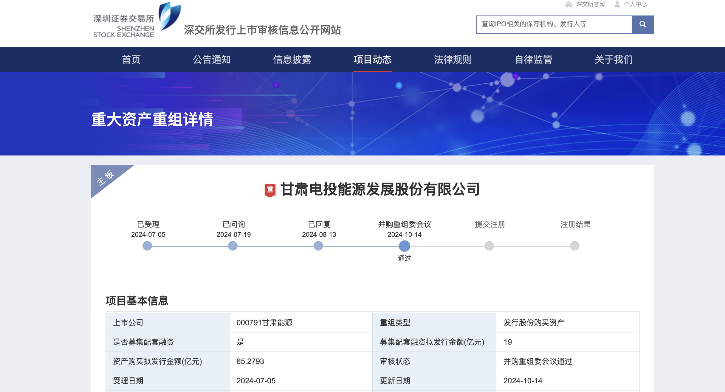 10月14日,深交所并購重組委審議通過甘肅能源發(fā)行股份購買資產(chǎn)項(xiàng)目,該項(xiàng)目從受理到過會歷時101個自然日。