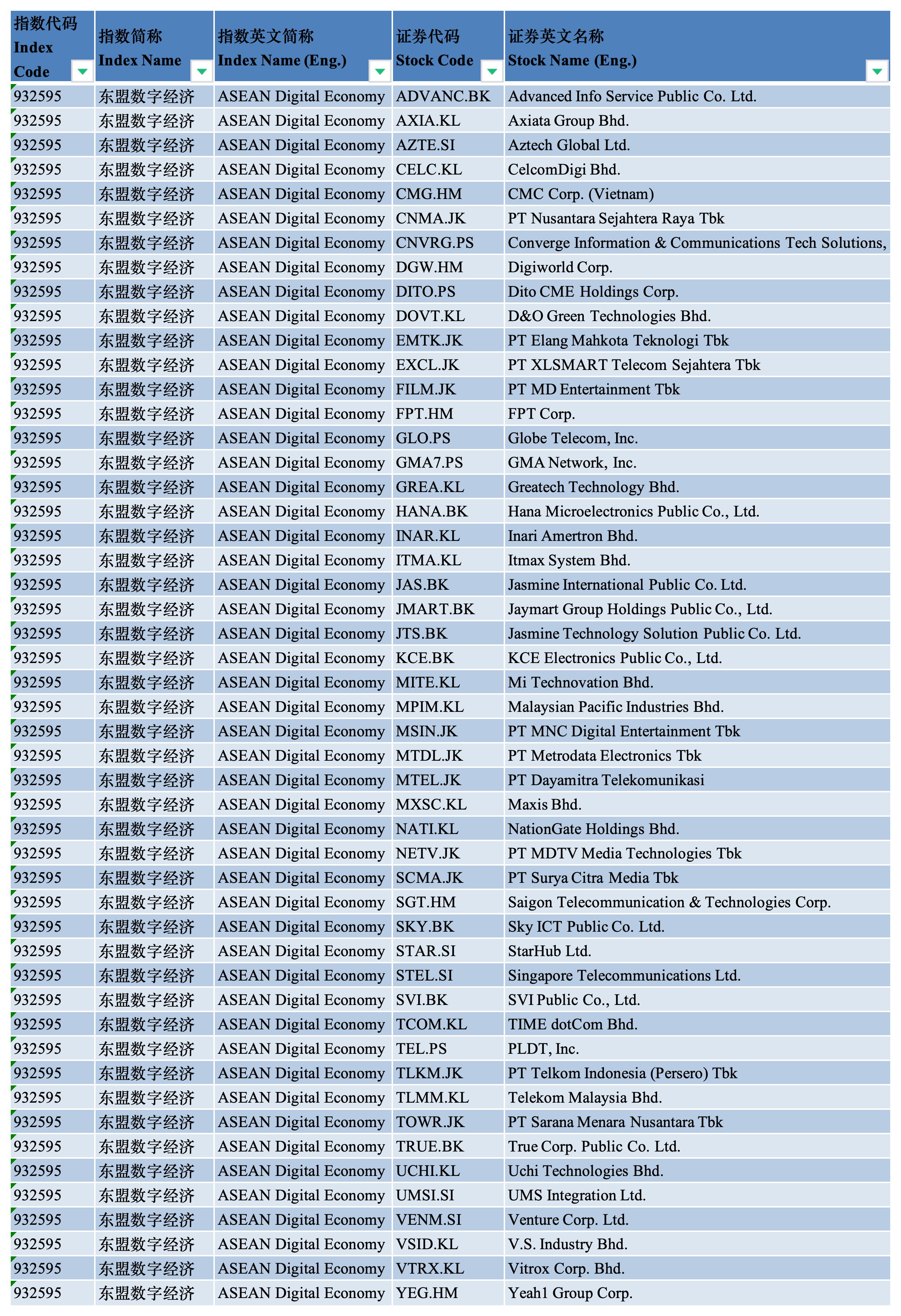 中證東盟數(shù)字經(jīng)濟(jì)指數(shù)從東盟成員國(guó)各證券交易所中選取流動(dòng)性較好、市值較大的50只數(shù)字經(jīng)濟(jì)領(lǐng)域的上市公司證券作為指數(shù)樣本,以反映東盟主要市場(chǎng)數(shù)字經(jīng)濟(jì)領(lǐng)域上市公司證券的整體表現(xiàn)。