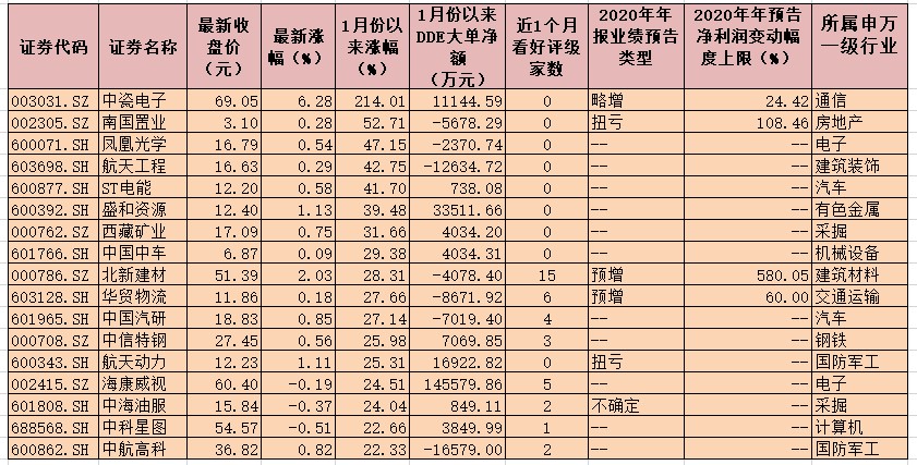 表:1月份以來漲幅超20%的央企國資控股個(gè)股一覽