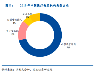 朗姿股份以女裝品牌起家,后通過(guò)投資醫(yī)美機(jī)構(gòu)切入醫(yī)美賽道,截至2020年第三季度,已擁有18家醫(yī)療美容機(jī)構(gòu)。不過(guò),在國(guó)內(nèi)醫(yī)美市場(chǎng),中端醫(yī)美機(jī)構(gòu)極為分散,除少數(shù)公立醫(yī)院以外,小型診所仍是醫(yī)美機(jī)構(gòu)的大頭,占到市場(chǎng)71%,大型連鎖所占市場(chǎng)份額總量不到6%。朗姿作為醫(yī)美機(jī)構(gòu)龍頭雛形初現(xiàn),但目前市場(chǎng)份額依然相當(dāng)有限。
