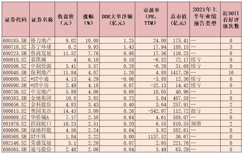 表:8月16日房地產(chǎn)行業(yè)漲幅超2%個股一覽