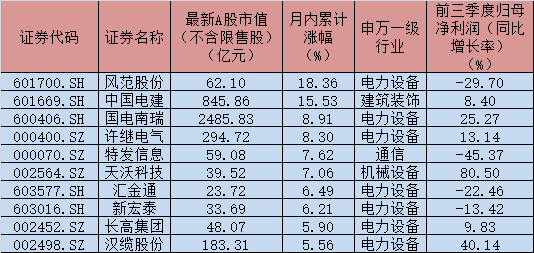 截至12月14日,A股特高壓產(chǎn)業(yè)鏈公司共有72家,合計(jì)市值1.04萬(wàn)億元。其中,風(fēng)范股份、中國(guó)電建月內(nèi)累計(jì)漲幅均超15%,國(guó)電南瑞、許繼電氣、特發(fā)信息、天沃科技、匯金通、新宏泰、長(zhǎng)高集團(tuán)、漢纜股份等個(gè)股月內(nèi)累計(jì)上漲5%以上。