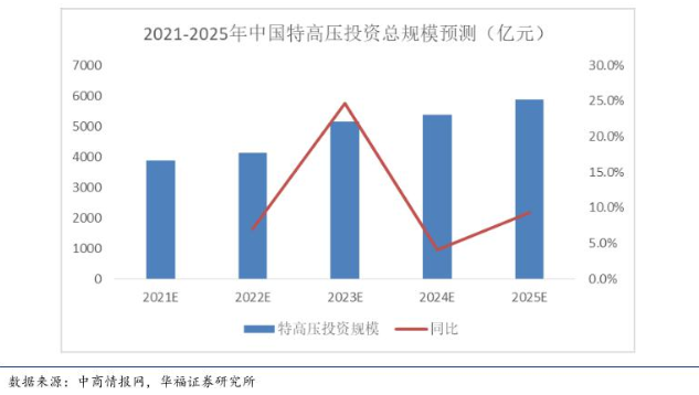 國(guó)家電網(wǎng)數(shù)據(jù)顯示,特高壓工程累計(jì)線路長(zhǎng)度從2011年的2542公里提升至2020年的35868公里,年復(fù)合增長(zhǎng)率達(dá)到34.2%。從項(xiàng)目周期來(lái)看,特高壓線路建設(shè)周期為2年-3年,因此隨著新核準(zhǔn)線路建設(shè)的陸續(xù)推進(jìn),2020年-2025年我國(guó)特高壓線路長(zhǎng)度將保持穩(wěn)定增長(zhǎng),預(yù)計(jì)到2025年有望突破4萬(wàn)公里(地球赤道一圈約40076公里)。